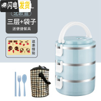 三维工匠不锈钢饭盒保温便携分格上班族成人可爱便当盒学生多层带盖保温桶 三层北欧蓝+餐具+保温袋级款