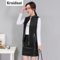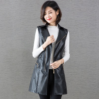年秋季女装纯色PU皮马夹百搭时尚潮中长款修身显瘦女潮黑色