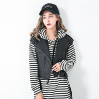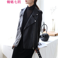 锦铭七玥皮衣马甲女2017新款韩版短款机车修身显瘦无袖百搭上衣秋季外套