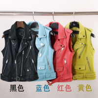 2017冬季新款女装皮衣 韩版西装领纯色洗水皮时尚无袖马甲皮外套