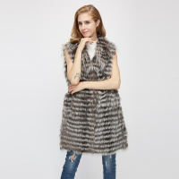 秋冬新款韩版长款狐狸毛皮草外套女翻领银狐毛车条背心女本色