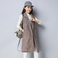 春秋新款女装PU皮中长款女士水洗皮韩版背心马夹女皮外套