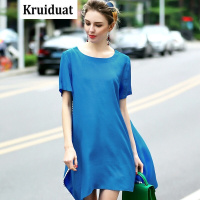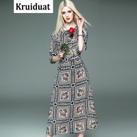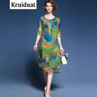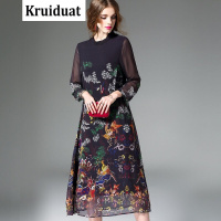 Kruidvat2017春装新款油画印花重磅连衣裙女夏中长款桑蚕丝花色