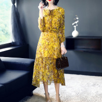 真丝连衣裙女长裙2018春夏新款波西米亚100%桑蚕丝碎花长袖连衣裙