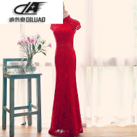 默蒂梵旗袍2017秋冬新款旗袍红色进酒七分袖修身旗袍裙红色