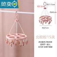 敬平晾衣架多夹子家用器多功能防风婴儿晒袜子宝宝内衣裤可折叠衣架 15夹北欧粉 1个衣夹