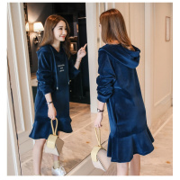 锦铭七玥孕妇装秋冬新卫衣长袖上衣字母绣花钉花孕妇连衣裙中长