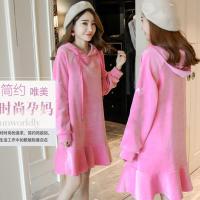 孕妇装秋装2017新款时尚连帽大码字母连衣裙中长款孕妇长袖卫衣