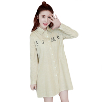 泡澡的蚂蚁春秋装新款韩版字母刺绣条纹翻领孕妇连衣裙 多5087