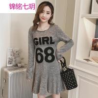 锦铭七玥孕妇装秋冬新款卫衣长袖上衣字母绣花钉花孕妇连衣裙中长款