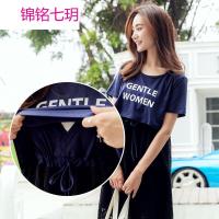 锦铭七玥2018春装新款外出时尚字母印花孕妇哺乳连衣裙潮妈产后显瘦喂奶衣
