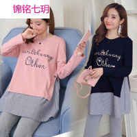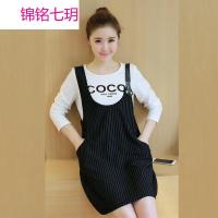 锦铭七玥孕妇套装春秋新款2017字母印T恤+中长背带裙孕妇两件连衣裙
