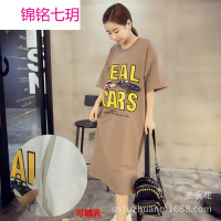 锦铭七玥孕妇装夏装哺乳连衣裙时尚大码长T恤棉孕妇长裙1608-字母