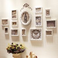 欧式实木照片墙客厅卧室沙发背景相片墙装饰创意时钟组合相框挂墙