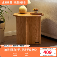 全友家居实木茶几原木风客厅阳台小圆桌沙发边几家用收纳桌