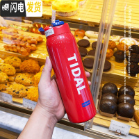 三维工匠大容量创意潮流保温杯男女学生带吸管运动水杯ins风便携健身杯子 红色中号350送杯刷+吸管刷