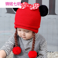 锦铭七玥婴儿假发帽子批发秋冬加厚针织毛线帽女宝宝韩版可爱蝴蝶结辫子帽