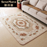 珊诗丽珊瑚绒地毯客厅卧室欧式田园地垫可机洗茶几垫床前垫防滑吸水黄色玫瑰花