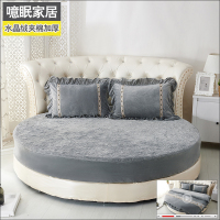 水晶绒圆床床笠单件加厚夹棉圆形床单四件套珊瑚绒床罩防滑保护套