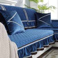 欧式沙发垫现代简约时尚四季通用沙发巾蕾丝花边套罩贵妃盖巾家用 瑾墨蓝色 沙发巾宽190*长350四人位