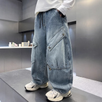 儿童装男童牛仔裤子春秋款2026新款大童春季男孩春装阔腿工装长裤