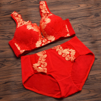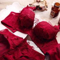 文胸套装本命年红色女士内衣无钢圈性感聚拢大红色内裤狗年结婚
