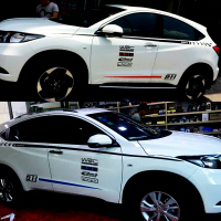 本田XR-V车贴缤智汽车拉花CRV车身腰线彩条贴XRV改装贴纸贴画反光黑+红/一套七天无理由退货 品质保证