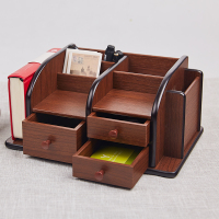 三维工匠黑胡桃木桌面收纳盒 原木办公手机书桌文具实木整理杂物盒 笔筒盒
