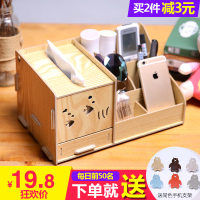 敬平纸巾盒桌面收纳盒ins风笔筒手机支架可爱家用床头柜多功能抽纸盒 灰色[送随机贴纸]