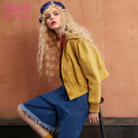 秋装2017新款短款休闲宽松长袖短款大翻领纽扣短外套女-731044