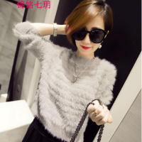 锦铭七玥2018春秋新款仿貂绒套头毛衣女马海毛开叉针织衫打底衫色短外套