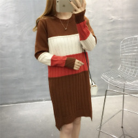 毛衣女套头宽松条纹中长款加厚针织衫打底衫长袖连衣裙