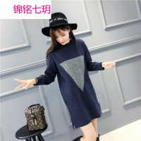 锦铭七玥2017秋季新款韩版宽松中长款套头毛衣针织衫直筒连衣裙女装孕妇装