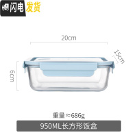三维工匠分层饭盒学生便携水果盒外出网红小号餐盒分格可爱小巧玻璃便当盒 蓝色长方形950