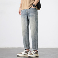 磨白宽松直筒港风牛仔裤男基础款百搭多色松紧水洗拖地牛仔裤男式