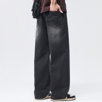 美式复古水洗直筒牛仔裤男宽松垂感阔腿裤做旧磨白休闲长裤