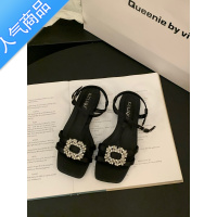 SUNTEK气质法式黑色高跟凉鞋仙女鞋子2023年新款夏季露趾水钻绝美罗马鞋