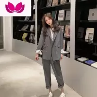 七斓韩系灰色休闲西装套装女2023春季新款宽松上衣气质西服裤子套