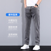 超薄小直筒修身男裤子长裤烟灰色休闲合体莱赛尔新款夏季牛仔裤男