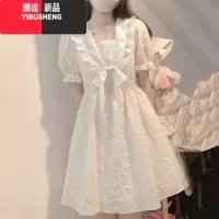 YIBUSHENG学院风白色连衣裙2024季新款甜美初恋少女蝴蝶结泡泡袖公主裙子