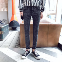 秋季青少年白色牛仔裤韩版男士九分修身小脚裤白色时尚休闲潮裤 乌灰色 【28码】