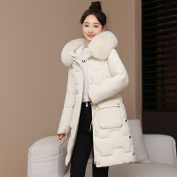 棉服棉衣女冬季韩系外套新款韩版长款修身收腰大毛领棉袄加厚