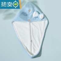 敬平干发帽女吸水速干包头巾家用双层洗头器擦头发毛巾新款浴帽 浅蓝白蝴蝶结[160g吸水速干]