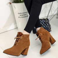 欧洲站短靴春秋女2017新款磨砂复古马丁靴高跟鞋尖头鞋粗跟女鞋子