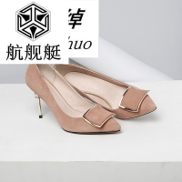 SUNTEK2023春秋新款水钻尖头浅口单鞋百搭名媛高跟鞋小跟磨砂女皮鞋