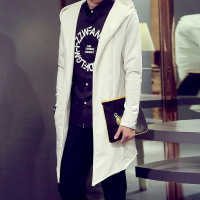 丹杰仕秋季新款潮男连帽中长款针织外套潮男港风开衫长款风衣卫衣小咖秀百搭潮