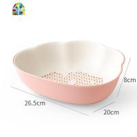 双层洗菜盆厨房网红客厅家用水果盘子现代北欧风ins沥水筐 FENGHOU 简约云朵[粉色]洗菜篮洗菜篮