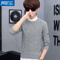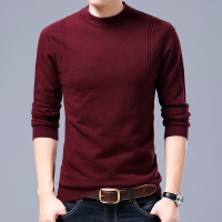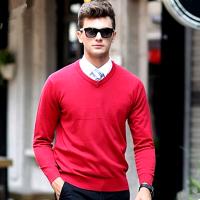 2017秋冬季男装保暖男士毛衫中青年套头纯色毛衣针织打底衫红色