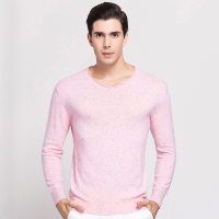 新款男士羊绒衫V领套头毛衣秋冬打底针织衫修身山羊绒衫男冬粉红色粉色彩点