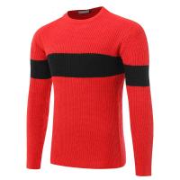 男士冬装加绒加厚针织T恤青年条纹打底衫圆领毛衣男红色